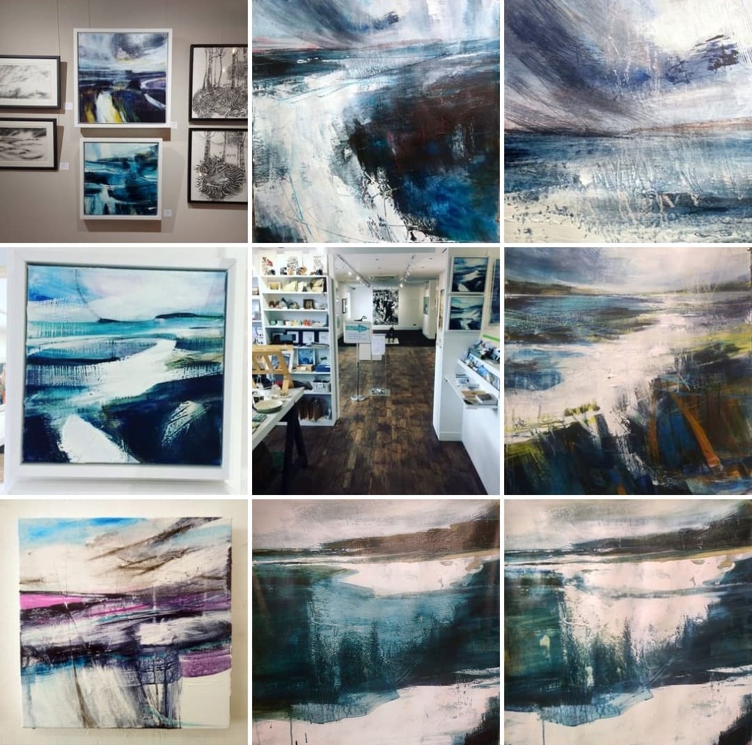 I have known Lesley since I was a teenager and more recently as an artist. A couple of years ago she visited my studio to ask about my practice as part of her assignment. We spoke for hours, drinking tea, discussing inspirations, painting methods and our love of walking and painting. Lesley’s work is fresh, expressive and experimental. Her inspirations are walking and the landscape – big seas, big skies.