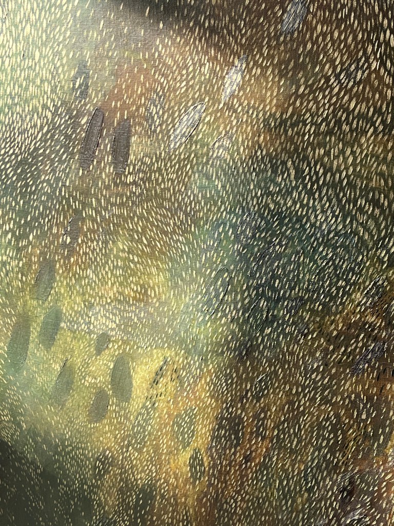 “The modern Orkney landscape is characterised by the agricultural developments of the last 150 years or so, which saw a complete transformation in appearance from common grazing and piecemeal cultivation, to squared-off, drained and ordered fields. The higher up and more difficult to reach places, that proved impossible to put under the plough, endured, and most outlooks across the islands are capped by a contrasting layer of rough grass and heather. It is to these more rugged and untamed landscapes that Laura Drever is most often attracted, and repeated visits to places like Orphir, Hobbister and Scapa have given the artist a deep understanding of the fabric and form of these and other iconic Orkney landscapes. Hoy (or Háey, the high island), is also a favoured location.”