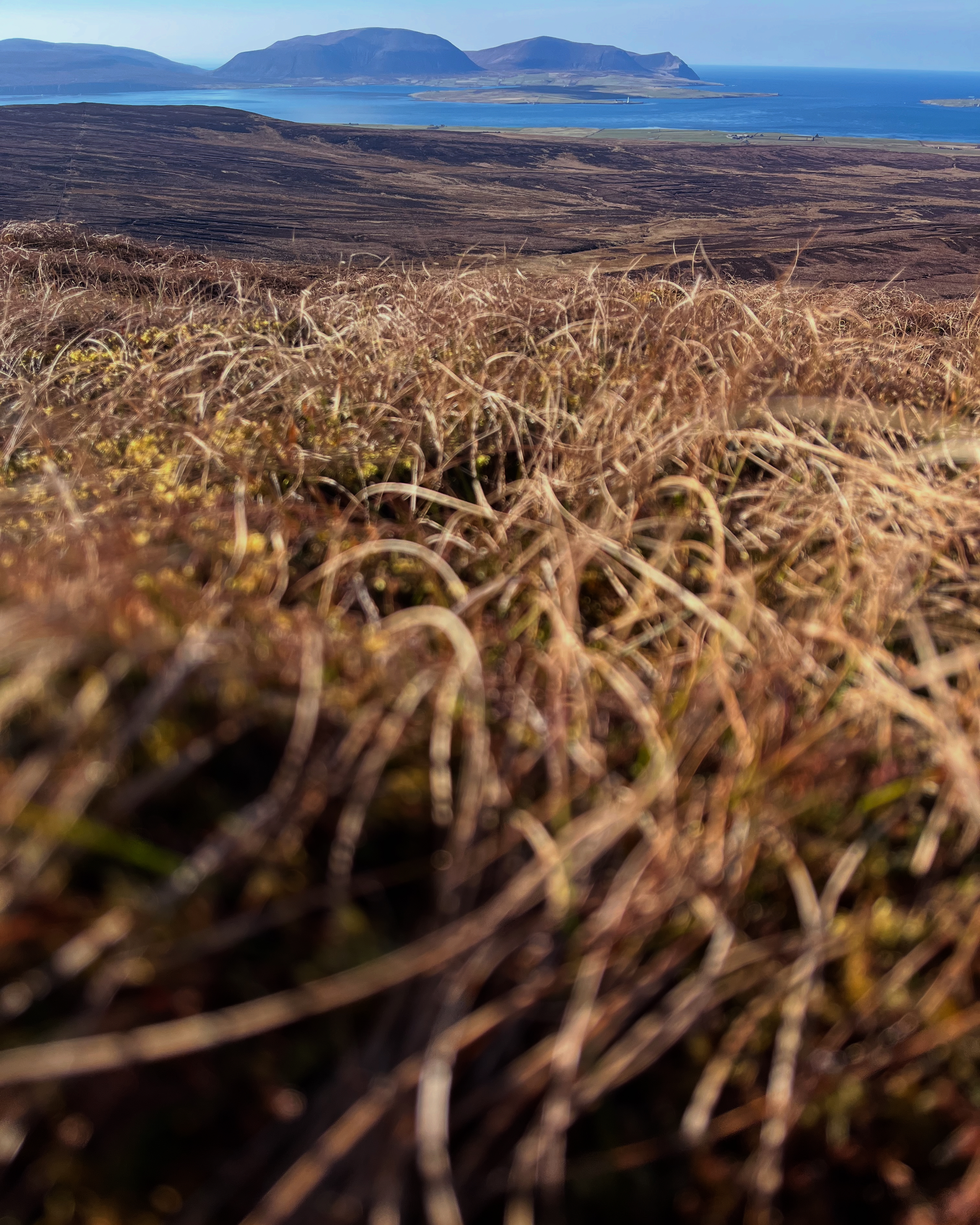Today, while standing on the Trig Point at the highest point of the Orkney mainland – Ward Hill in Orphir – an elderly gentleman came and spoke. He told me that he walks this route every week (although hadn’t done it in a wee while). He was heading further from Gruf Hill over Ward Hill and on to Mid Hill before heading back to Stenness. He talked about walking the West side of Hoy, walking it in a day. Catching the Lynness Boat walking all day to get back in time for the Moaness boat at the end of the day. His son does Ironman competitions and they often walk together. He is a dancer. He goes to church and told the story of going up Ward Hill on Hoy, it was mist covered. When he got to the top, the mist cleared for a minute and he could see the Mainland clear as can be. I said “someone must have been listening”. He told me he’d once met a group of youngsters on this walk that were orienteering for their Duke of Edinburgh, he said they looked and sounded like they were having a great time. He had his jumper tied over his shoulders and was wearing walking boots with Berghaus Gaiters.