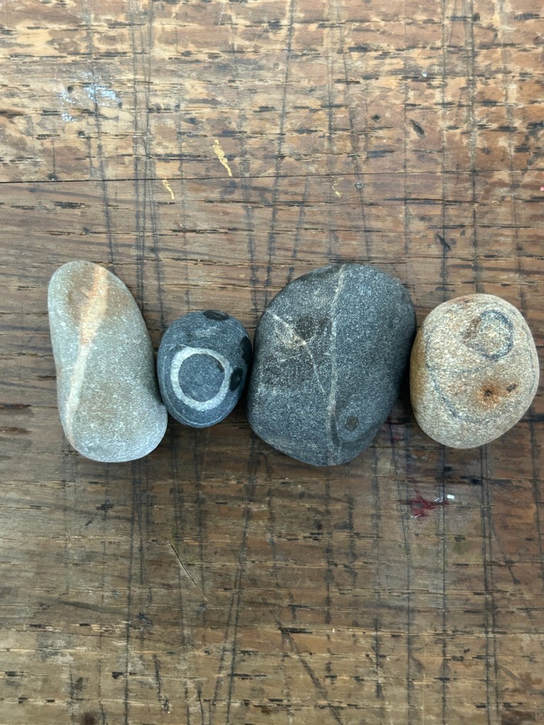 In between all of this, life flows on – our son is away to college in Norfolk, our daughter is getting ready to sit her exams. My freelance Fridays are spent being creative with others, the rest of the week holding a paintbrush. The bits and bobs from The Scottish Gallery – cabinet items, pencil case, gold paint – have made the journey home to Orkney and I am looking forward to unpacking them. To welcome my Eerie Orums shelf and mark the end of Glimro, some new found objects will be added…