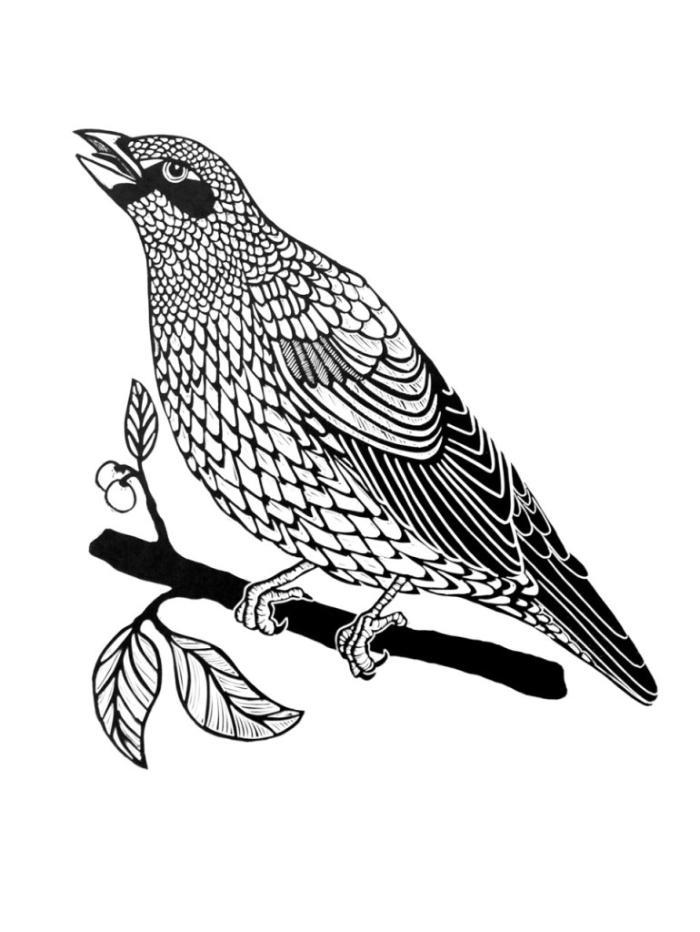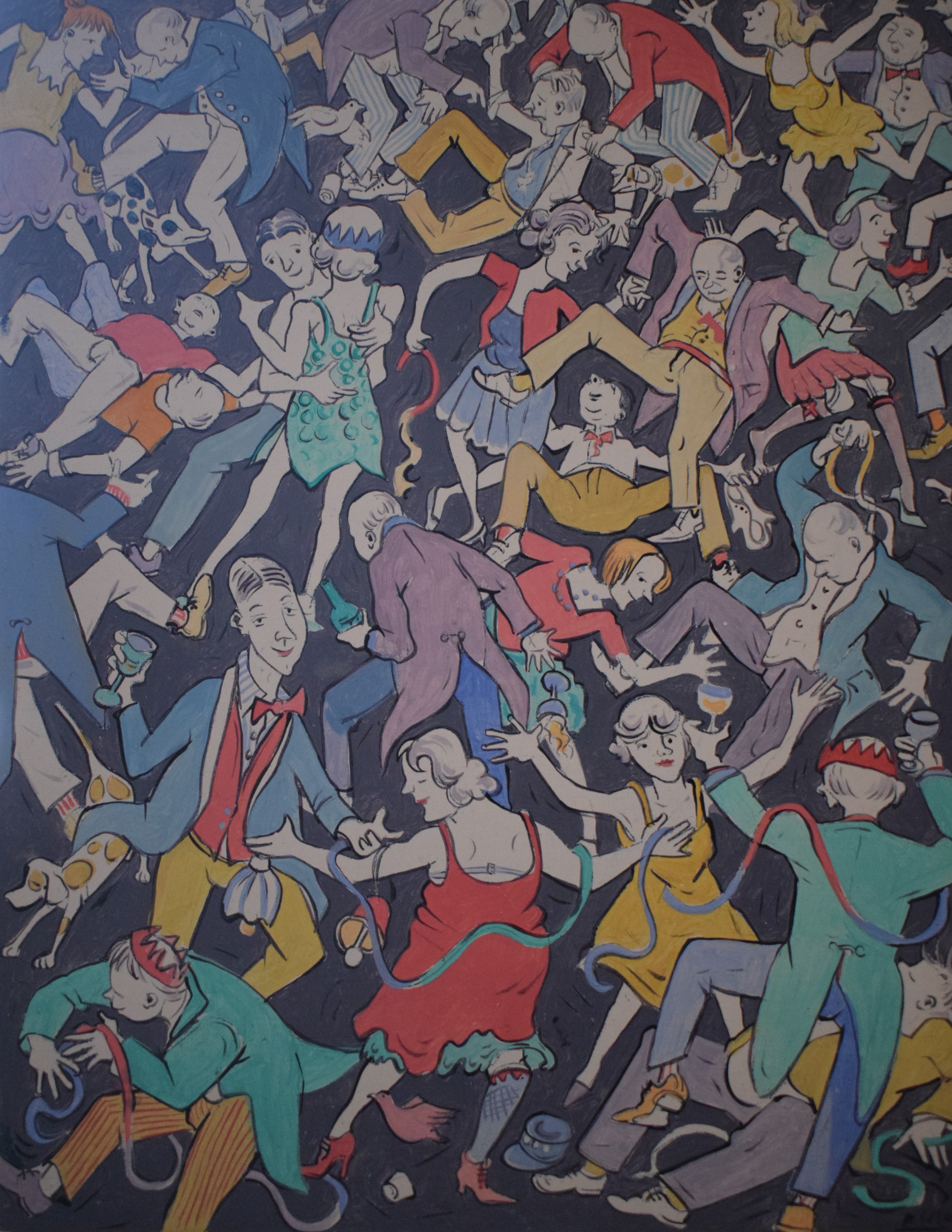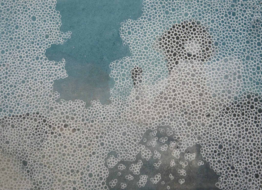 Iridescent ink, pigment ink, gouache and gesso on paper.