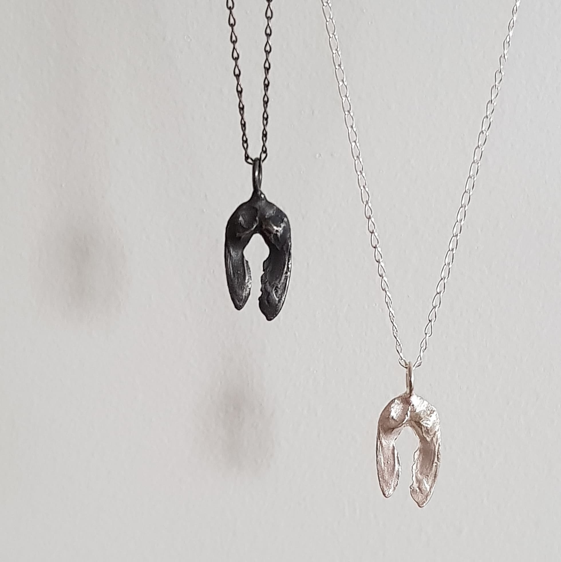 20mm X 10mm sycamore on 18” chain Brushed Luminous silver or oxidised darkened silver
