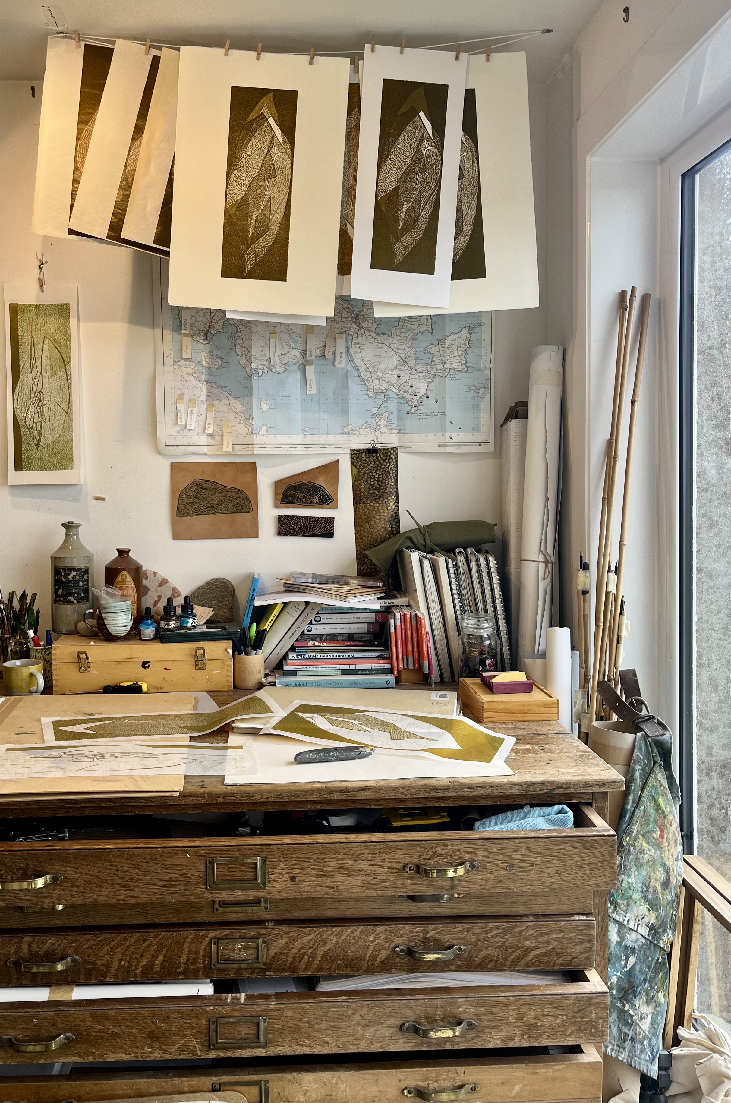 Laura recently expanded her practice into Printmaking. Her exploration has opened up further possibilities including learning a new way of mark making in response to the Orkney landscape.